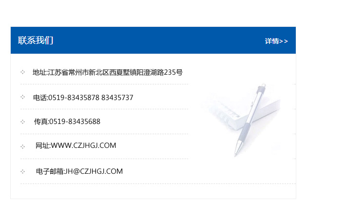 地址:常州市新北區(qū)友邦商務(wù)大廈1幢16、17層  電話:0519-85101652  傳真:0519-85112595  郵編:213022  網(wǎng)址:www_cz-jiayue_cn.gaoyuanxue.com  郵箱:xiajifengaa@163.com